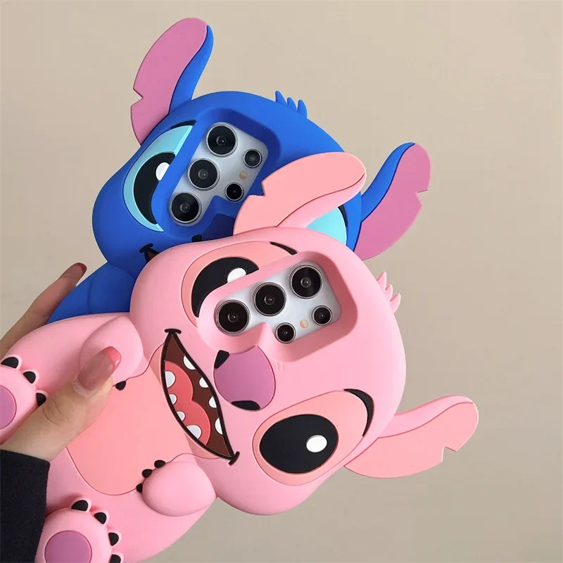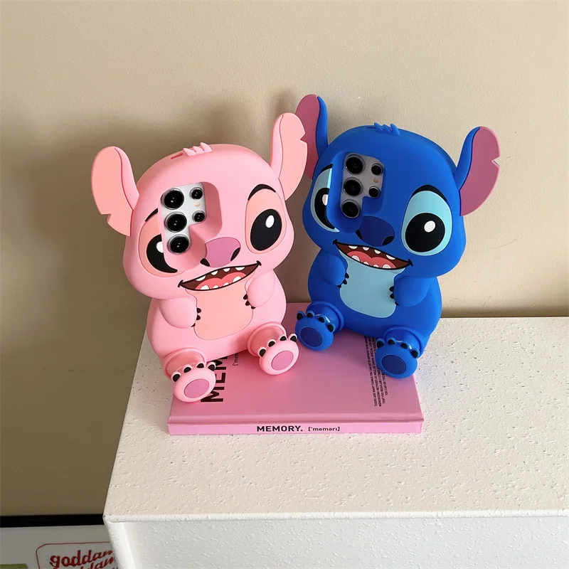 3D Cartoon Angle Stitch Leg Bracket Silicone Couple Phone Case For Samsung Galaxy S25 S24 S23 S22 Ultra Plus Shockproof Cover