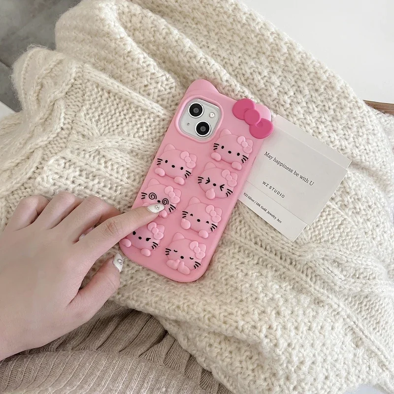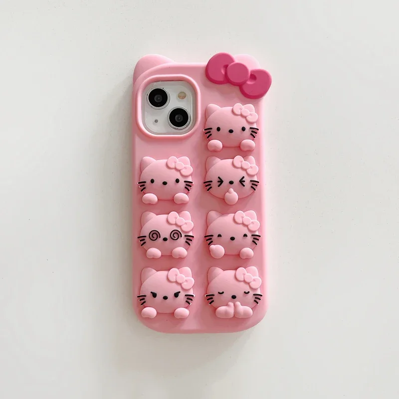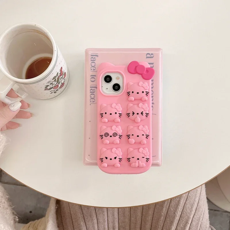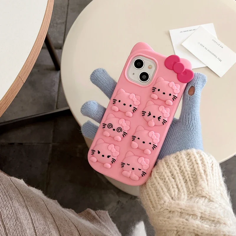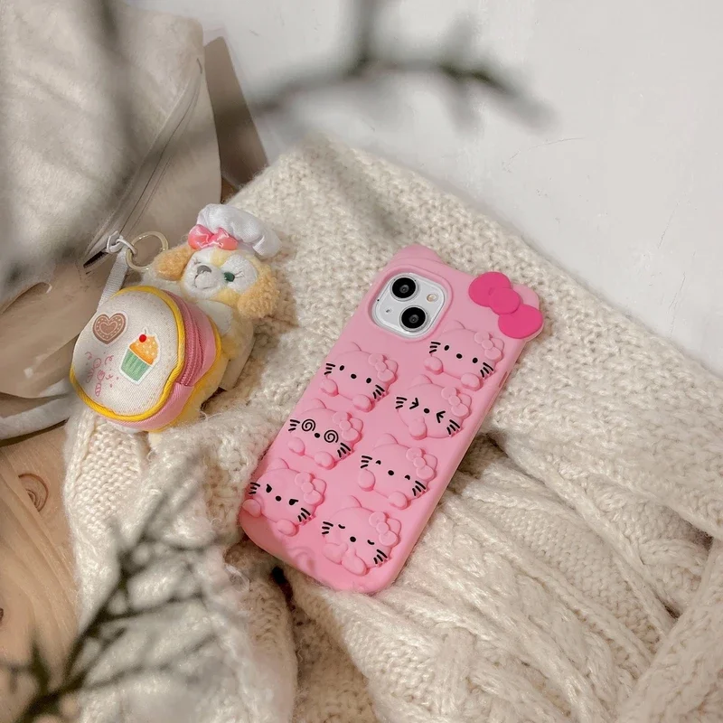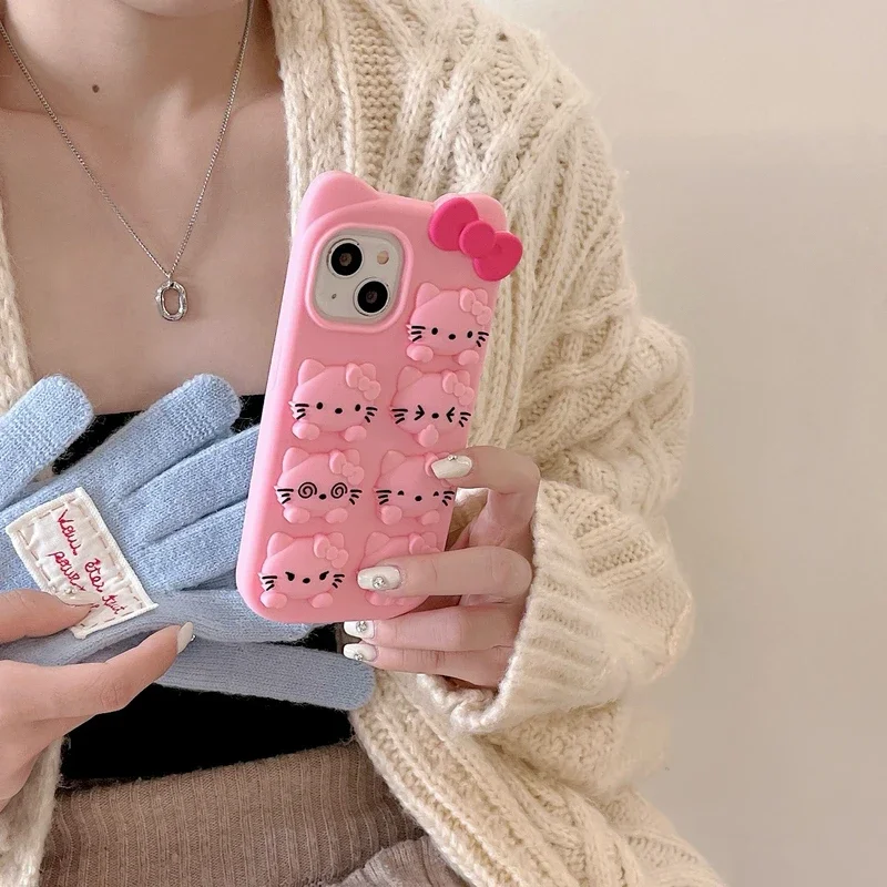 3D Cute Cartoon  Sanrio Hello Kitty Relieve Stress Phone Case For iPhone 15 14 13 12 11 Pro Max Shockproof Soft Silicone Cover