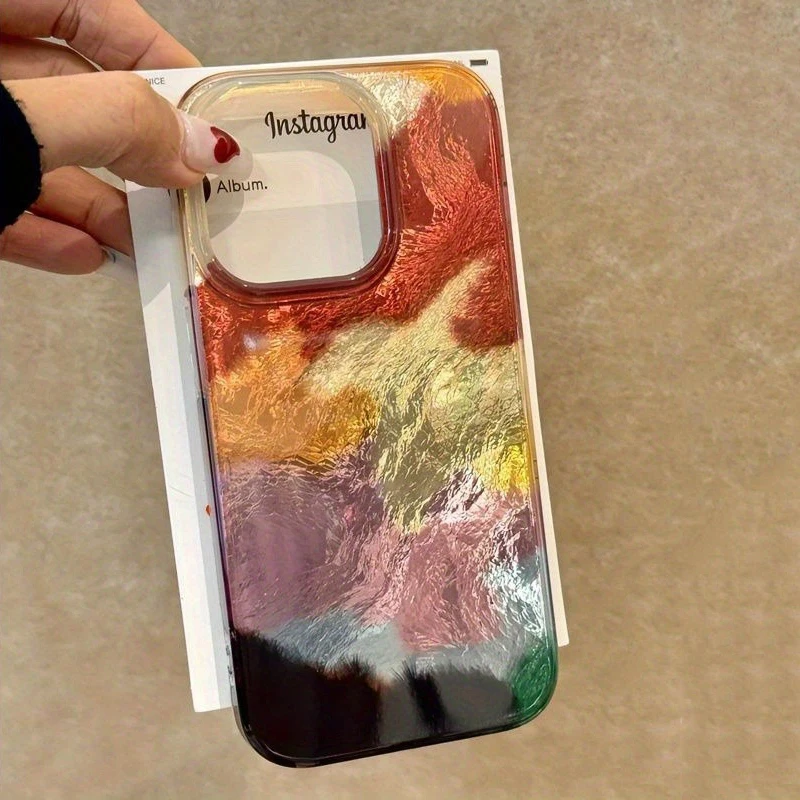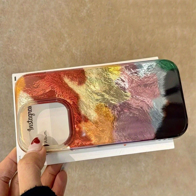Art Color Gradient Tin Paper Pattern Glacier Case For iPhone 17 16 15 14 13 12 11 Pro Max XS XR 7 8 Plus Shockproof Bumper Cover