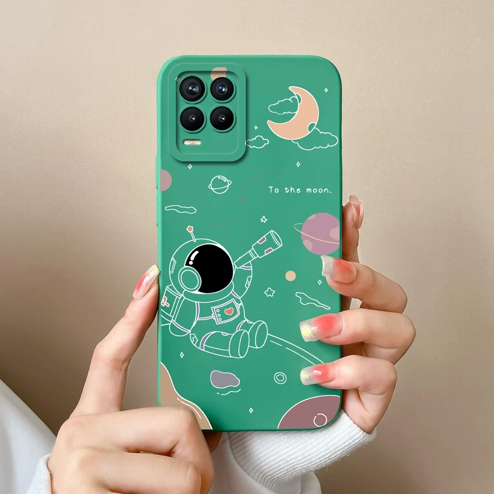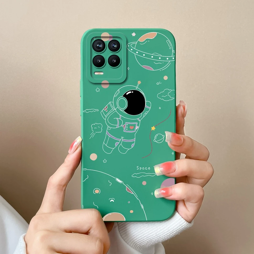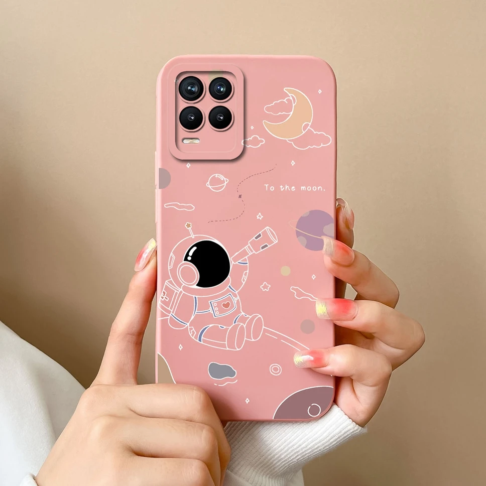Cases For Realme 8 Pro 4G Shell Lovely Cartoon Astronaut Pattern Soft Liquid Silicone Phone Covers For Realme8 8Pro Fundas Coque
