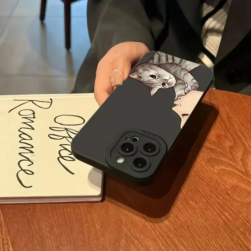 Cat American short Shorthair kiss Phone Case for iPhone 16 Cases iPhone 15 14 13 12 Mini 11 Pro Max 16 7 8 Plus XS SE Back Cover