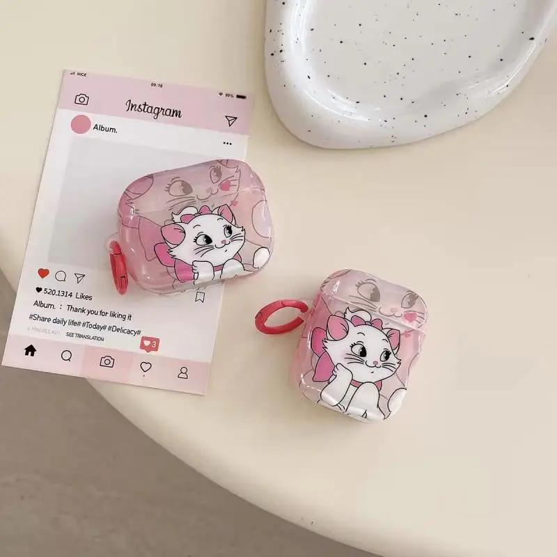 Disney The AristoCats Marie Cat Transparent silicone earphone protective case Couple AirPods 1 2 3 4 Universal Earphone Case