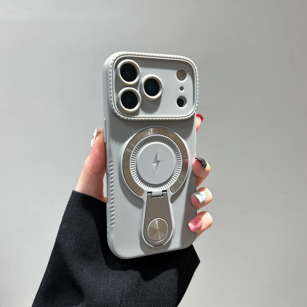 for Magsafe Wireless Charge Lightning Logo Phone Case For iPhone 17 Air 16 15 14 Plus 13 12 Pro Max 11 Hidden Bracket Soft Cover