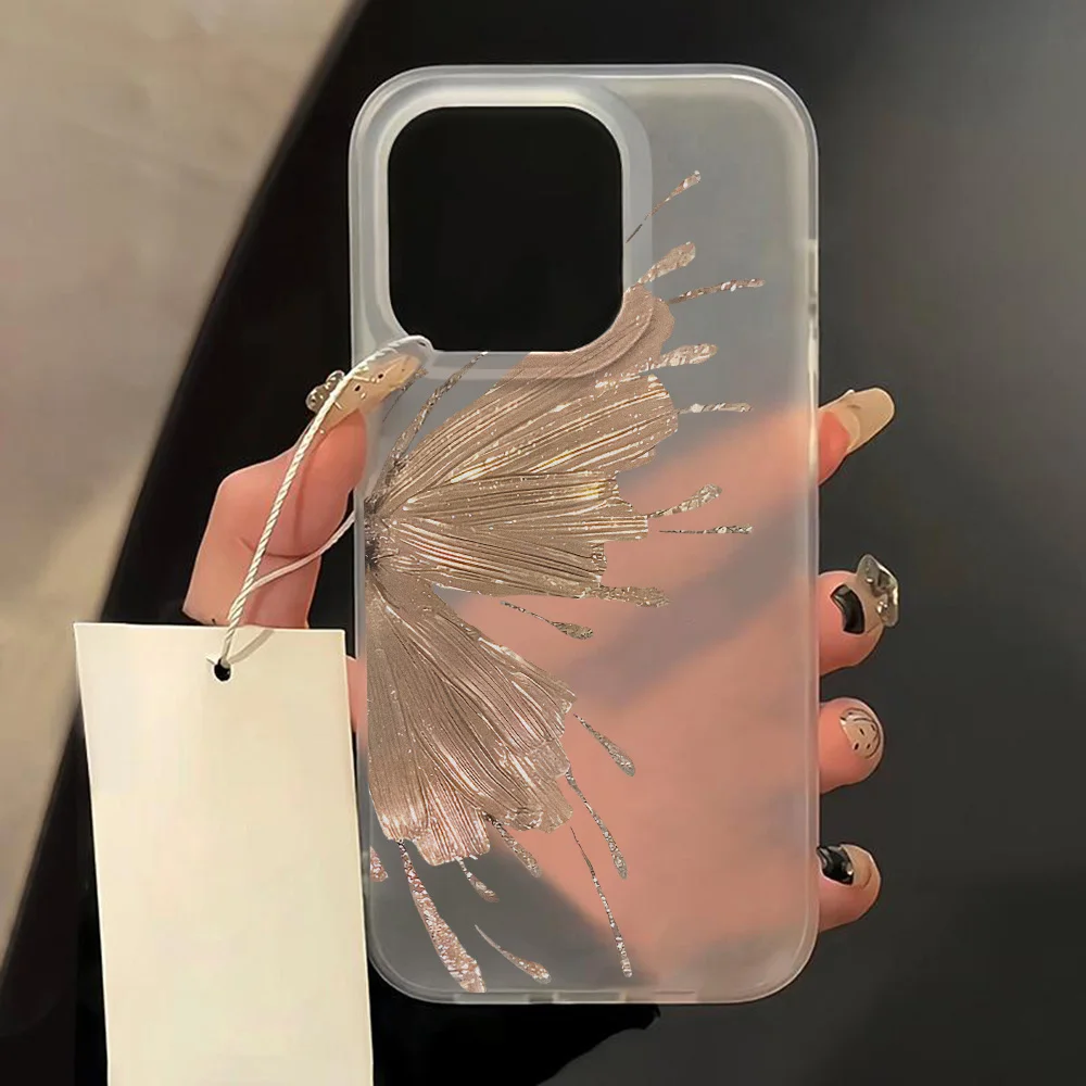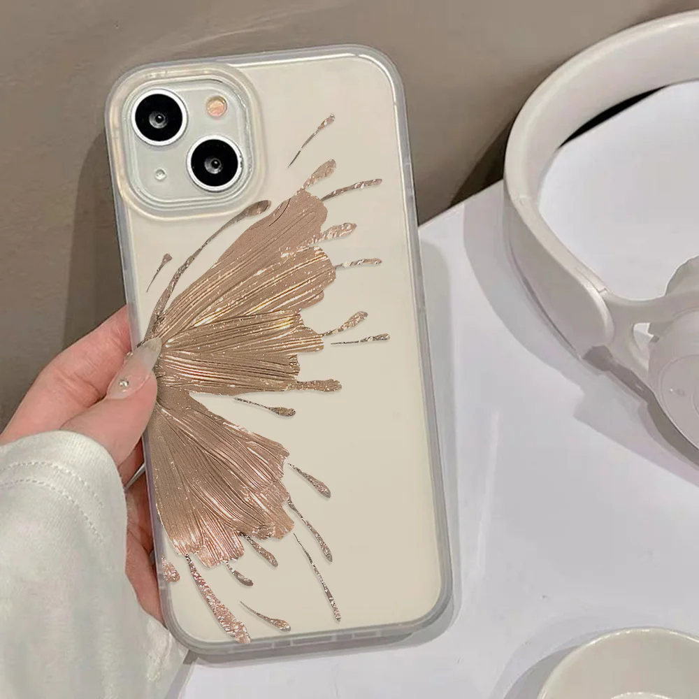 Gold Butterfly Soft TPU Case For iPhone 13 11 12 14 15 17 16 Pro Max Funda iPhone 12 13 Mini Plus Translucent Clear Phone Cover