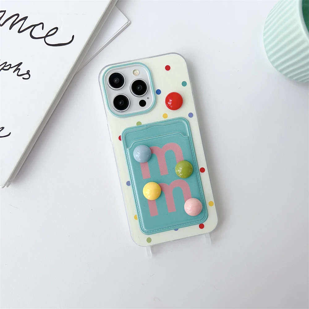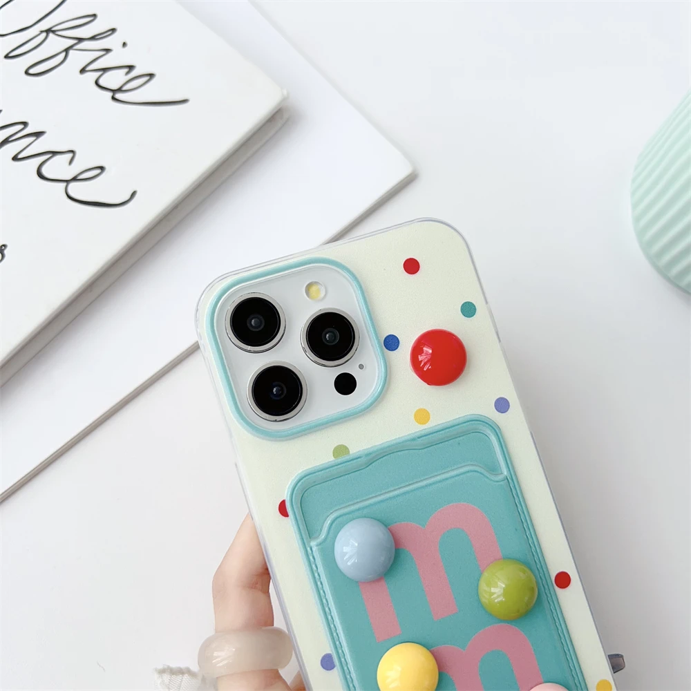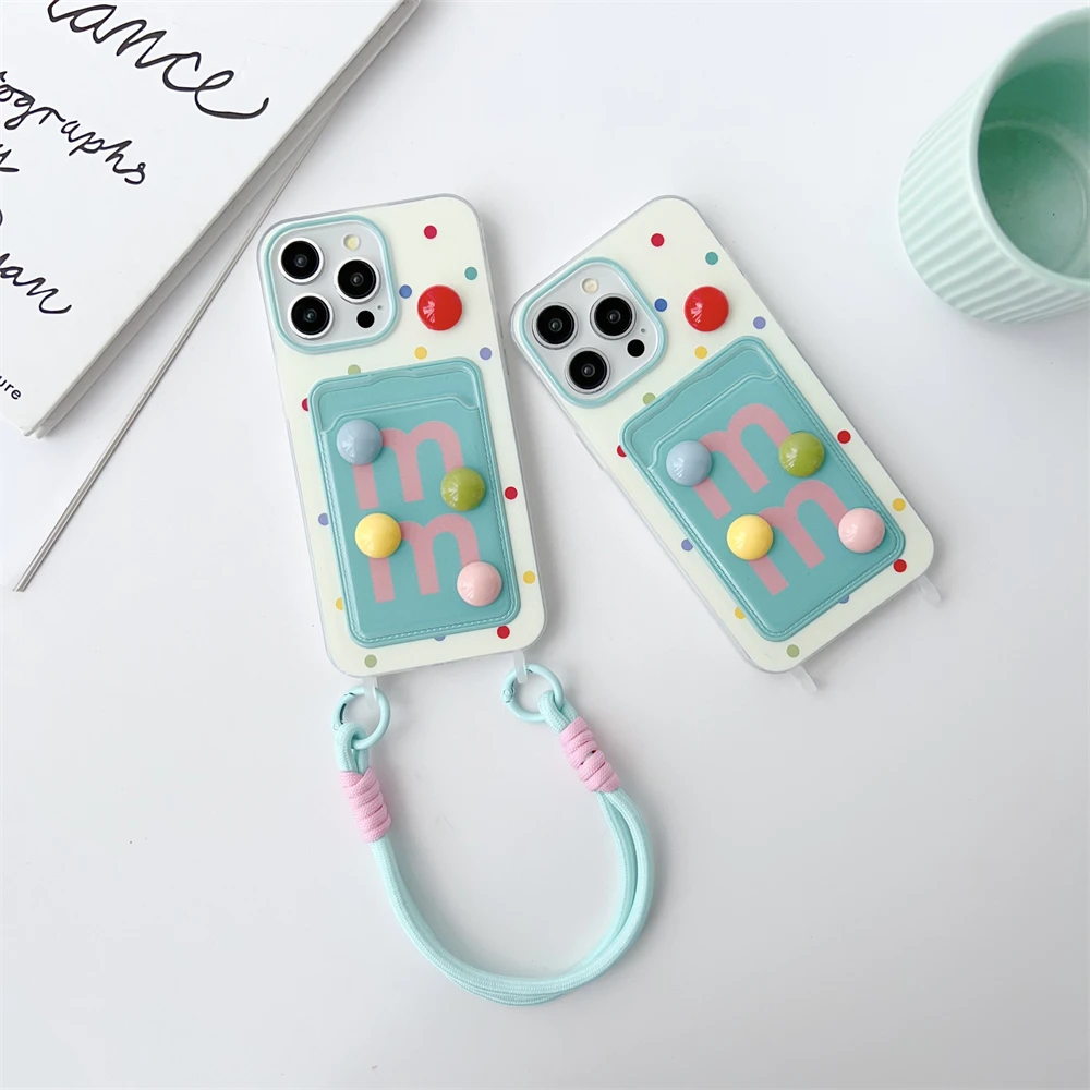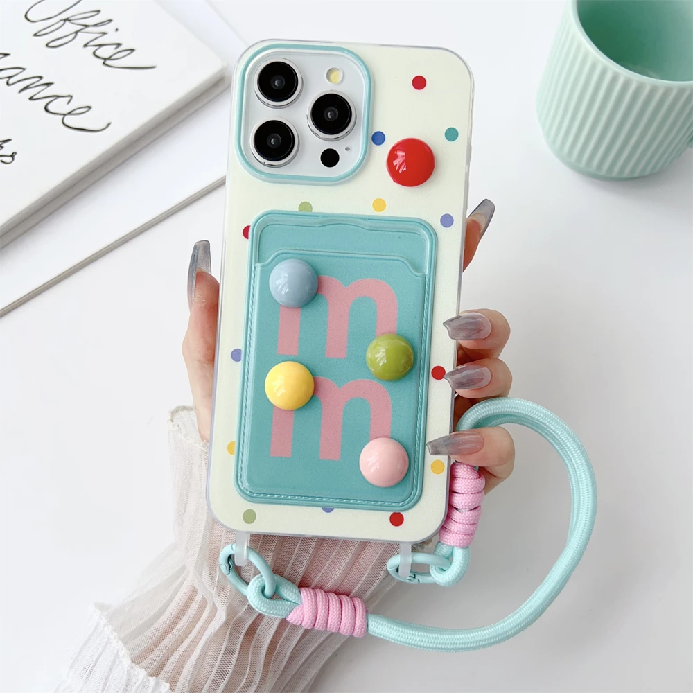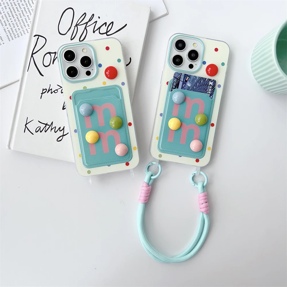 Japan Cute color bean card bag wrist strap silicone phone case for iphone 15 Pro Max 11 12 13 14 Xs Xr cartoon protection cover