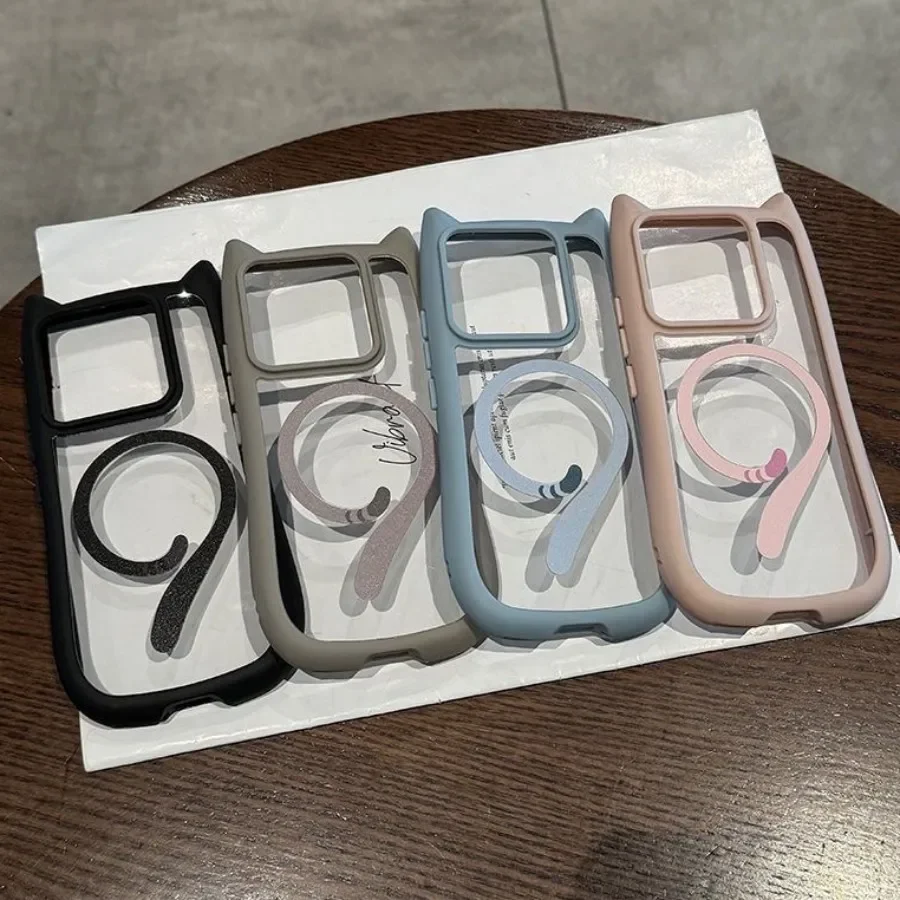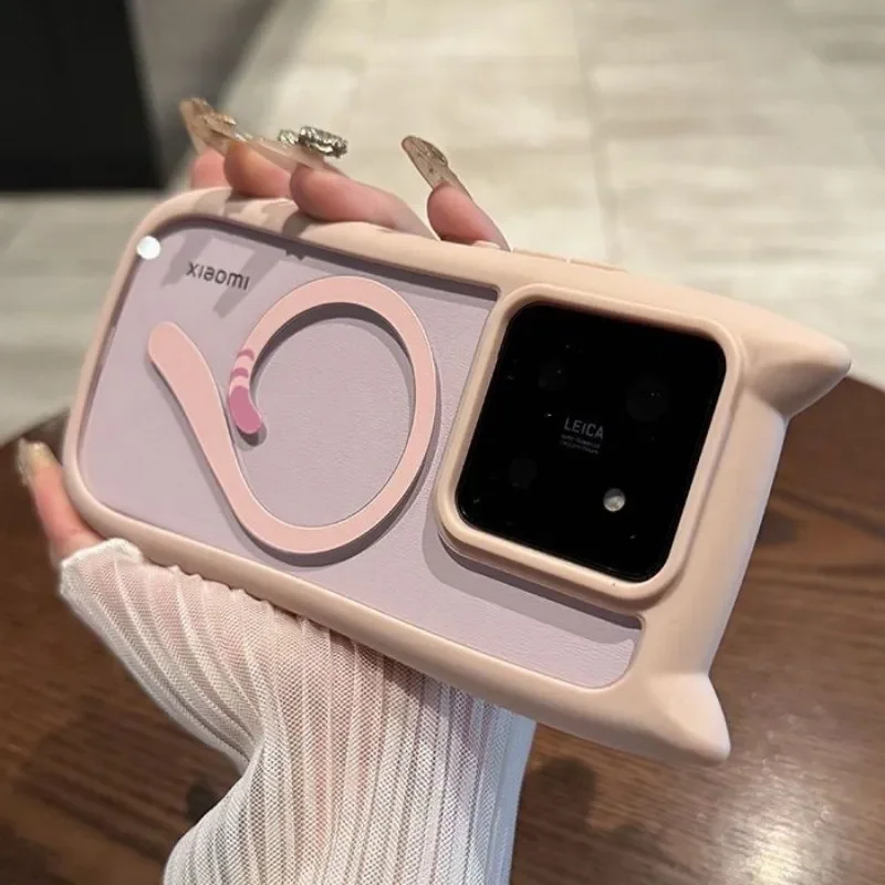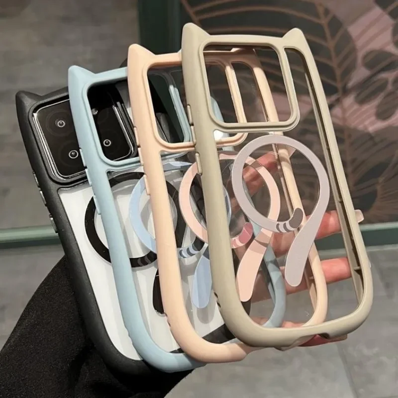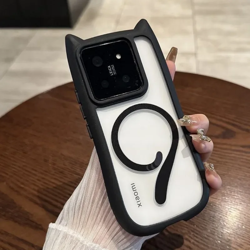 Magnetic Magsafe Lovely Cat Ear Clear Case For Xiaomi 15 Ultra 14 Pro 14 Redmi Note 13 5G Hard Shockroof Wireless Charge Cover