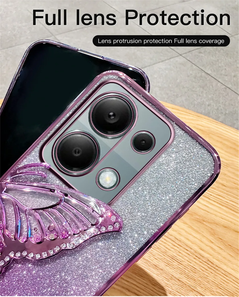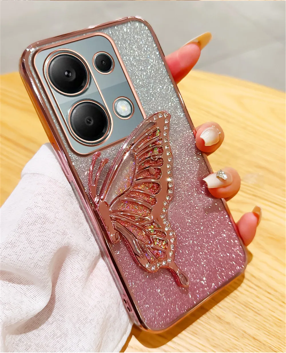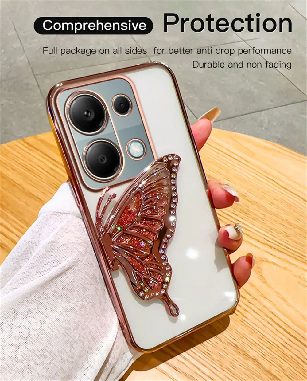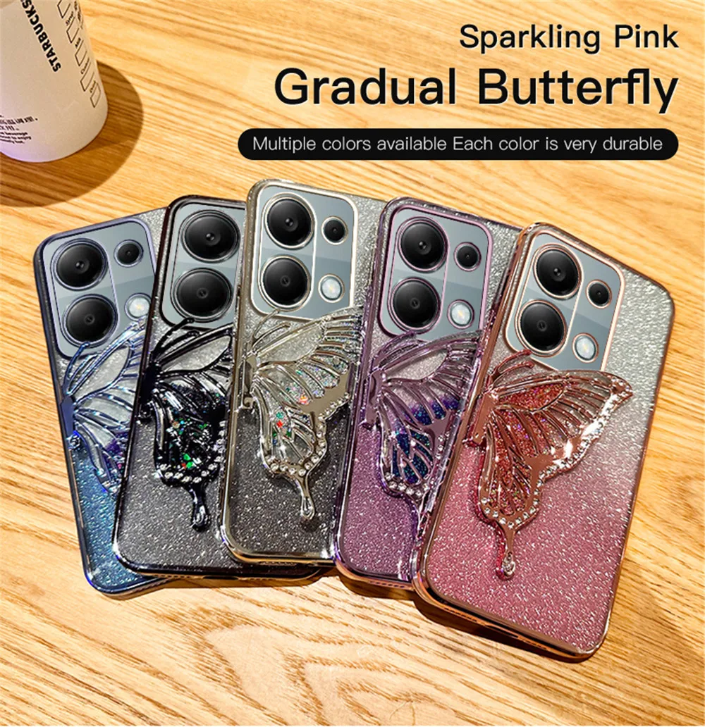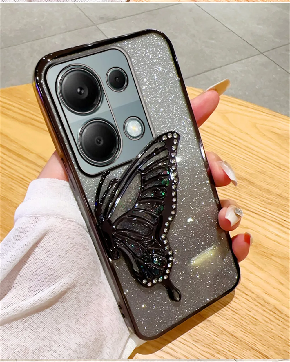 Note14 Quicksand Butterfly Stand Gliitter Case For Xiaomi Redmi Note 14 Pro Plus Note 13 14C 13C 14T POCO X7 X6 C65 Soft Cover