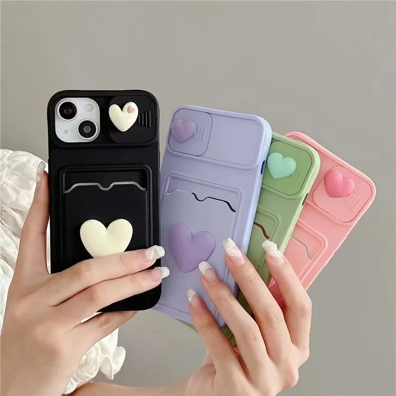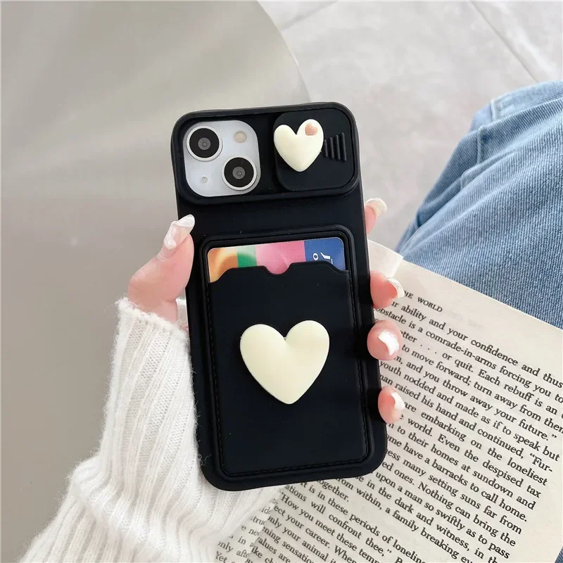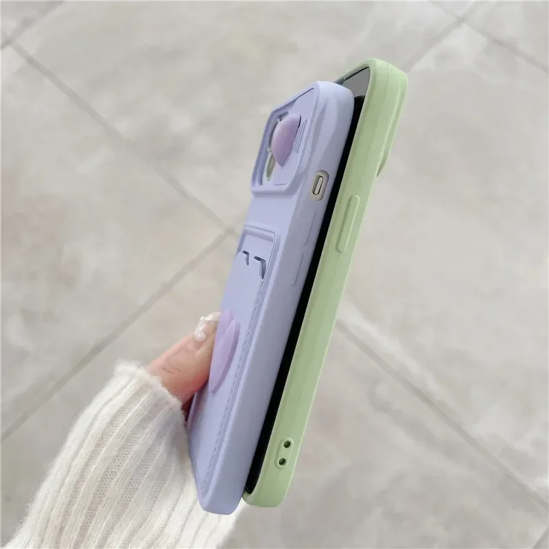Simple Love Silicone Wallet Card Case For iPhone 15 14 13 12 11 Pro Max 7 8 Plus Case